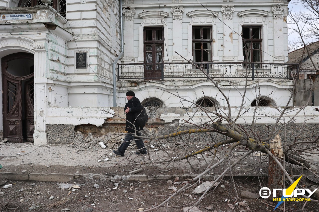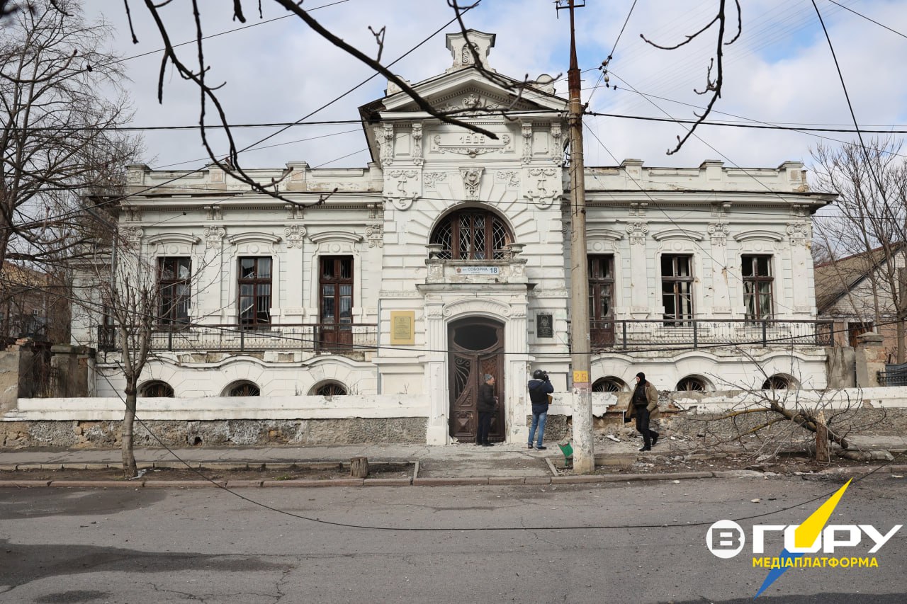 Днями цей будинок в італійському стилі, як і інші споруди історичного центру Херсона, постраждав від ворожих обстрілів. До повномасштабного вторгнення рф в Україну тут проводилися шахові змагання, а зараз – розруха та понівечені вікна, стіни та фасад будівлі.