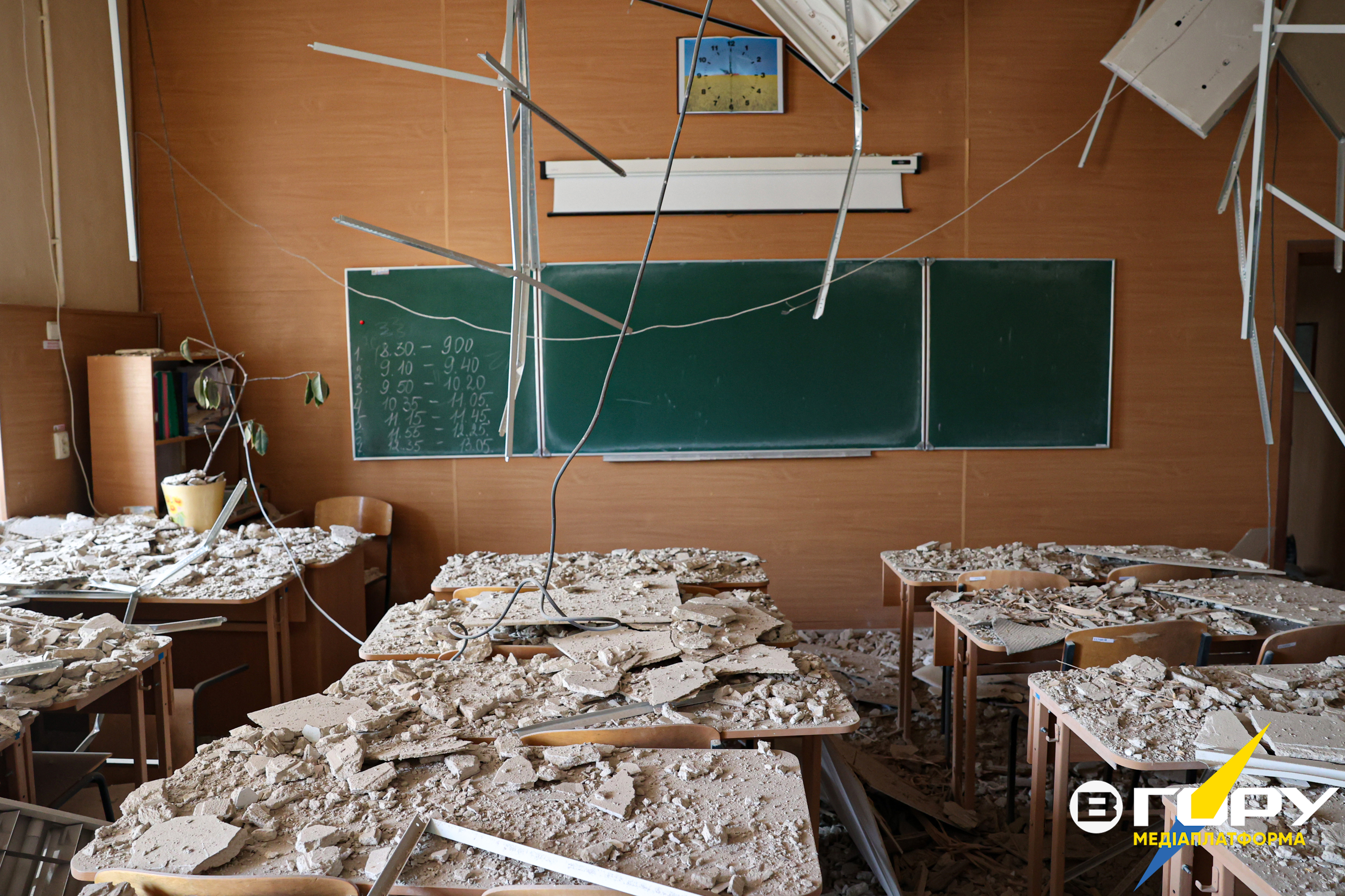 Багато херсонців навчалися в цьому закладі. А тепер тут понівечені шкільні класи, зруйновані стіни, вибиті вікна. Усе це приніс нашому місту «руський мір».