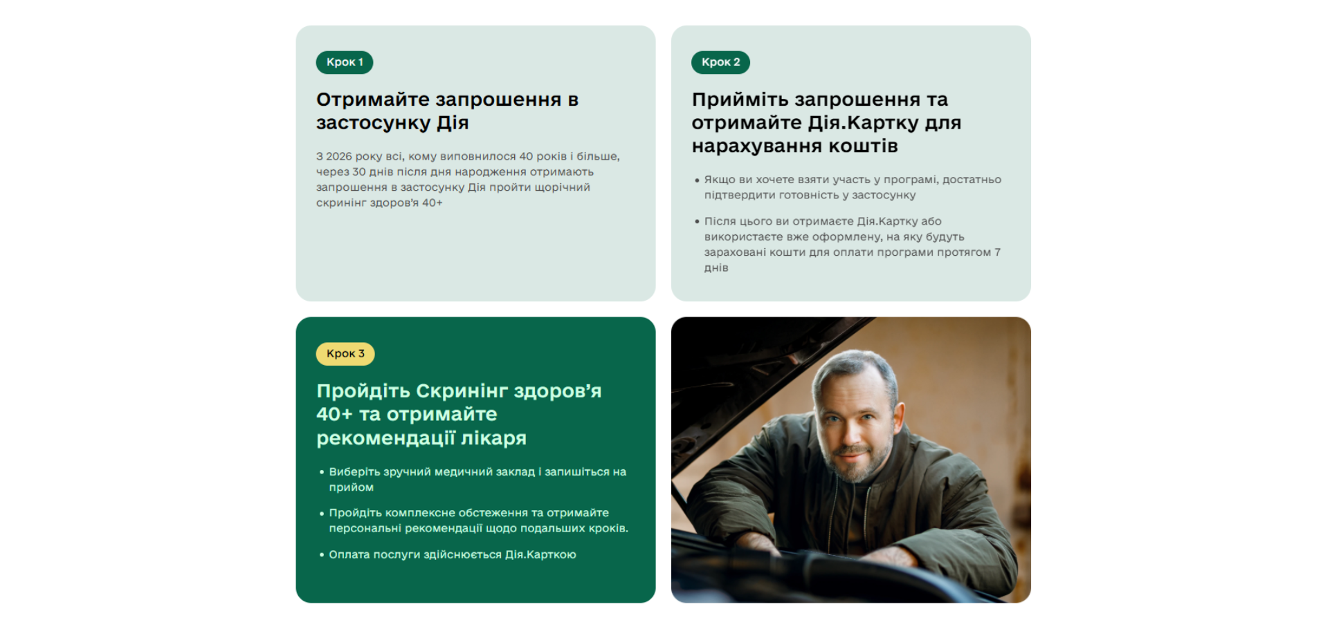З 1 січня 2026 року в Україні стартувала програма “Скринінг здоров’я 40+”, орієнтована на людей від 40 років. Вона передбачає раннє виявлення серцево-судинних захворювань, цукрового діабету і проблем психічного здоровʼя. Записатися на програму можна, звернувшись у Центр надання адміністративних послуг.