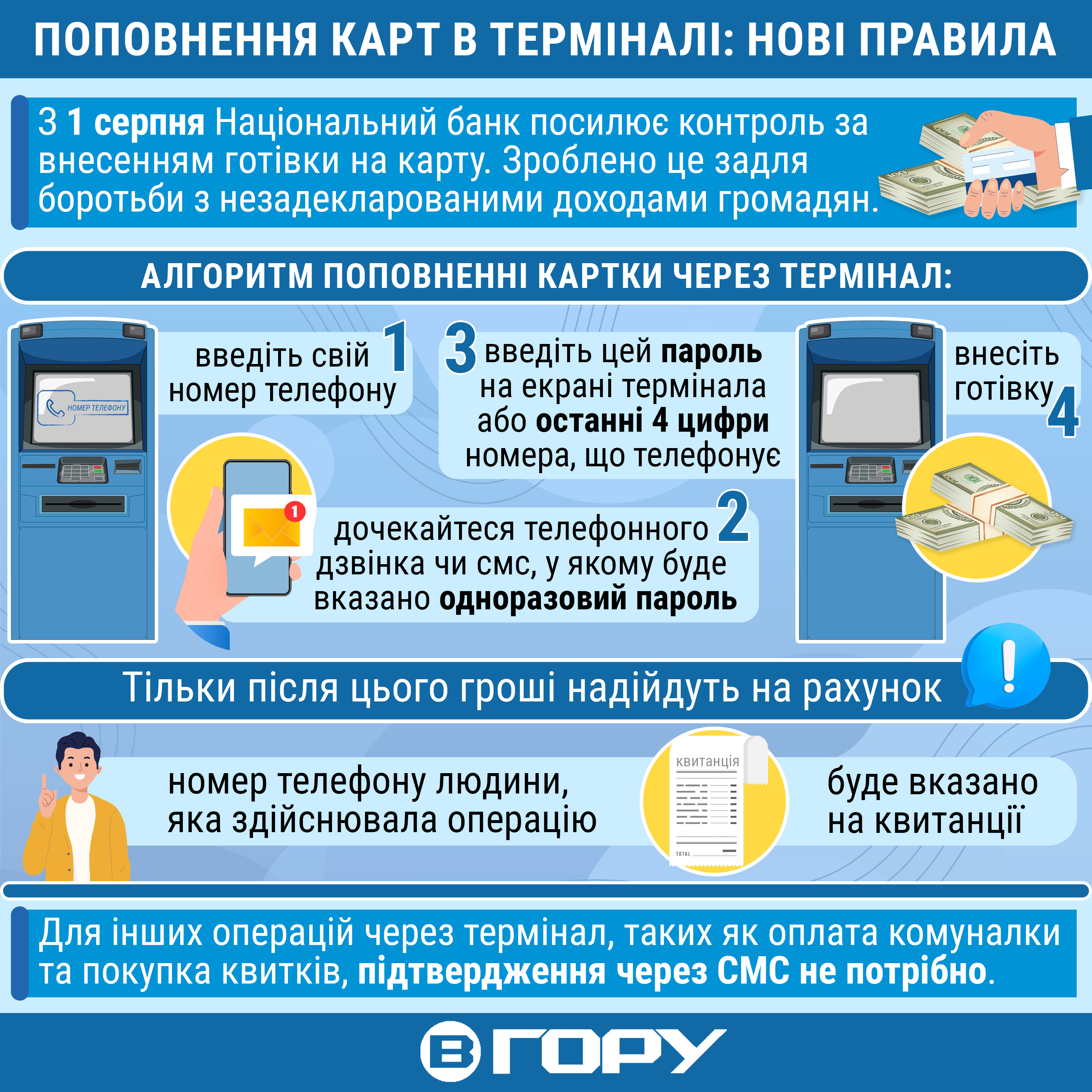 У Національному банку України посилили правила поповнення готівкових коштів через термінали. Нововведення не зачіпатимуть усі фінансові операції. В Україні з 1 серпня змінилися правила поповнення банківських карт через термінал. Тепер клієнти повинні будуть пройти додаткову верифікацію.