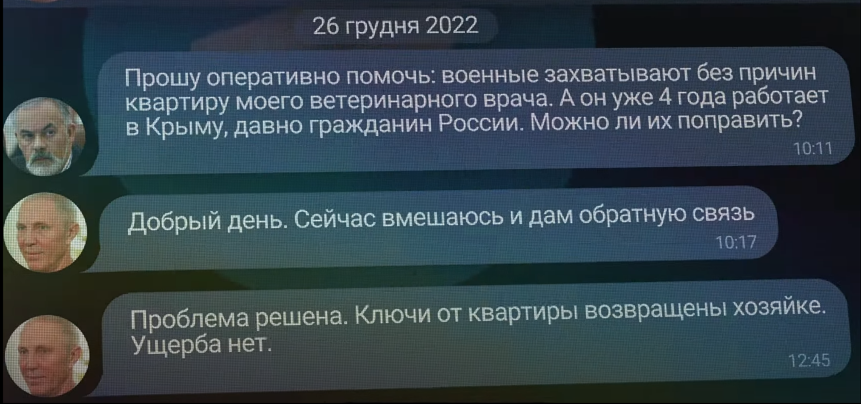 До того ж із листування стало відомо, що Табачник просив Сальдо, аби російські військові в селищі Мирне Каланчацького району не заселялися в квартиру ветеринарного лікаря Табачника.