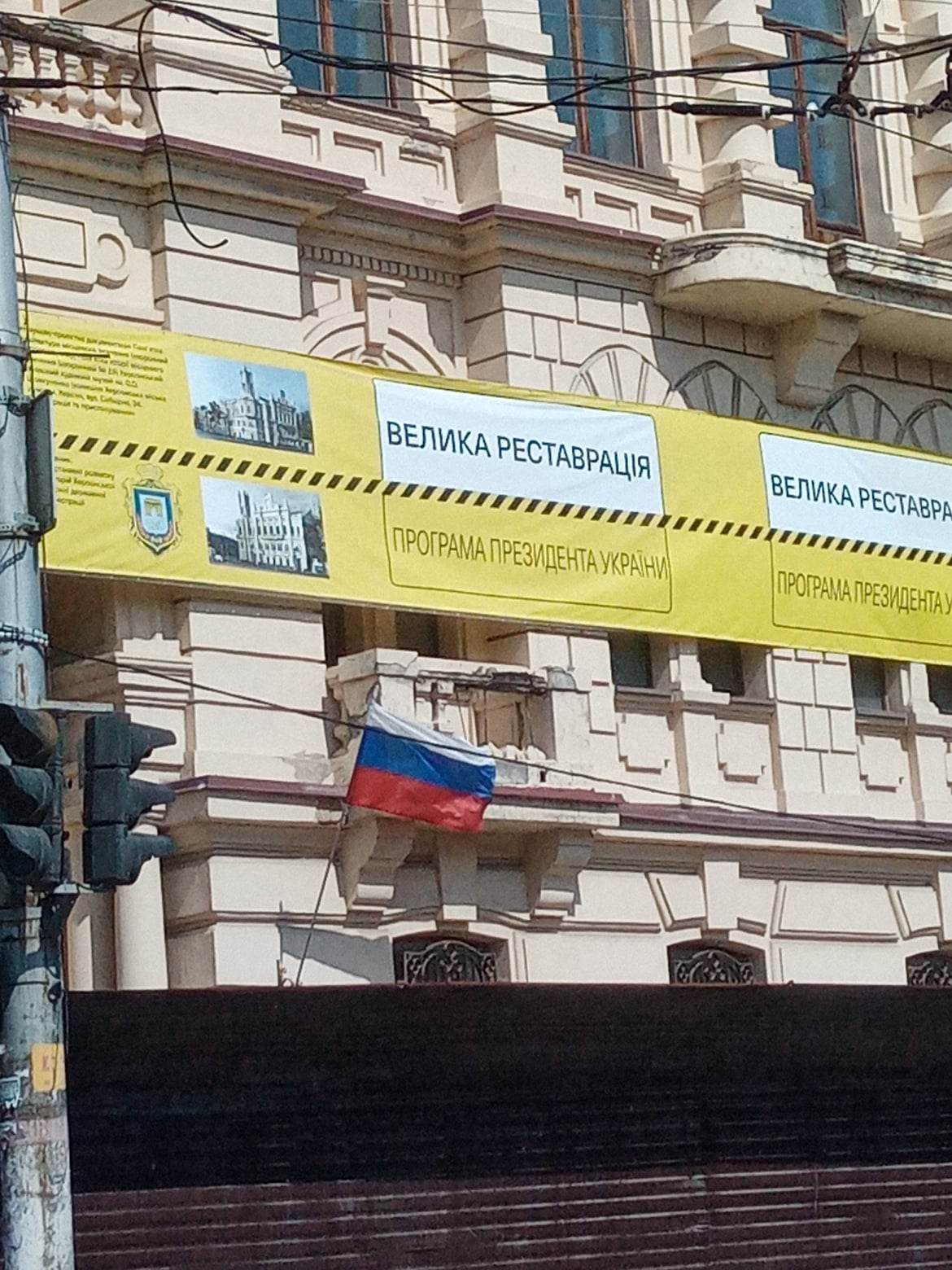 Після переїзду Інна стала більше фотографувати місто — не для себе, а для людей, які виїхали та сумували за домівкою. Саме тоді з’явилися фотографії херсонських музеїв, вулиць Гошкевича, Соборної. Херсон ставав зовсім іншим, і одну зі своїх світлин мисткиня назвала «Театр абсурду» — це будівля художнього музею з банером програми Президента України «Велика реставрація» та російським триколором на вході. До речі, ця світлина зроблена з вікна машини поки на перехресті стояли на світлофорі. Просто стати на розі вулиць і фотографувати було небезпечно, поруч жили ефесбешники.
