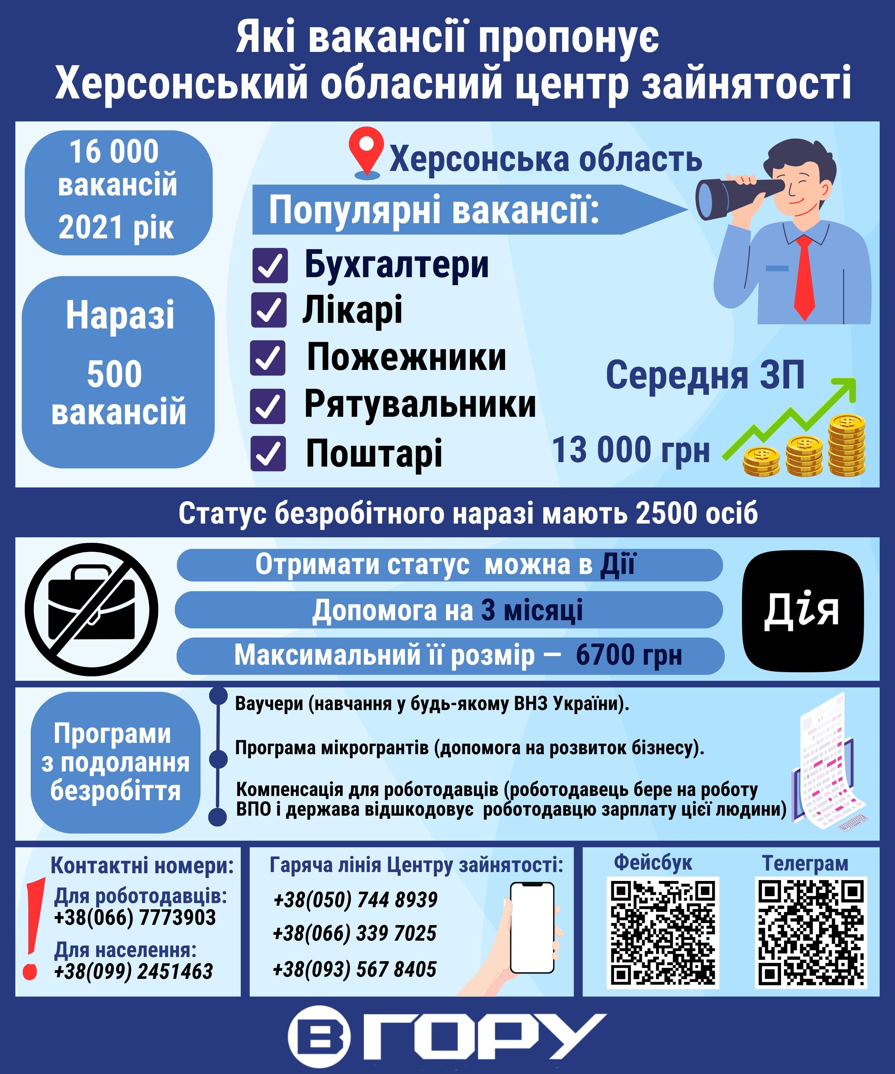 Мешканці Херсона та області, шукаючи роботу можуть звернутися по допомогу в Херсонський обласний центр зайнятості. Крім цього, центр пропонує різні програми з подолання безробіття – ваучери на навчання, мікрогранти для відкриття бізнесу тощо. Де знайти актуальну інформацію – дивіться в інфографіці.