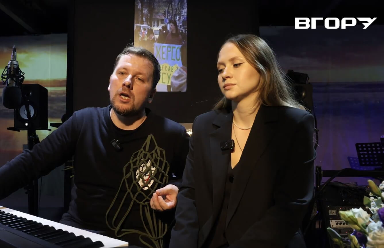 Олексій та Валентина розповідають журналістам “Вгору” про роботу над виставою.