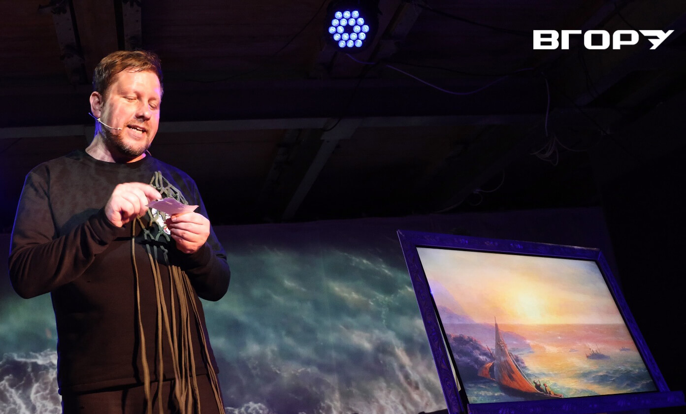 Олексій читає цитати Івана Айвазовського.