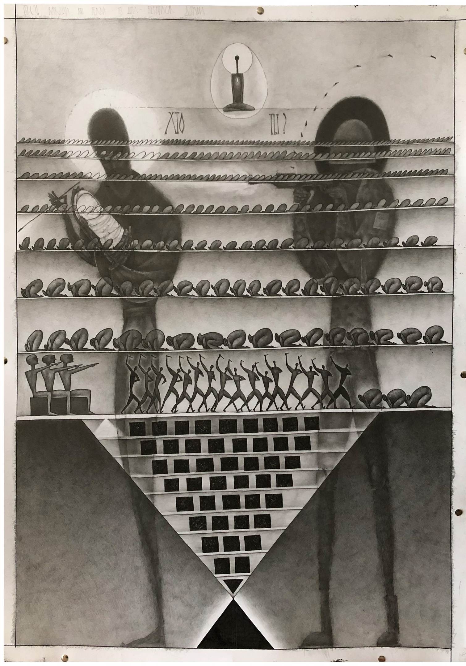 Тут практично немає якихось картин, скульптур, інсталяцій або ще якихось матеріальних мистецьких речей, які ми звикли споглядати на художніх виставках — лише величезні шпалери із зображеннями, які супроводжують історії херсонців. І саме історія людини виходить на перший план, через неї ти розумієш і відчуваєш образи або символи, надихаєшся силою духу митців, і звичні речі набувають нових сенсів. Вбивча сатира і нестихаючий біль, невмирущі надії та первісні страхи, яскраві спогади й похмуре сьогодення — з цієї мозаїки візій і почуттів постає нескорений Херсон.