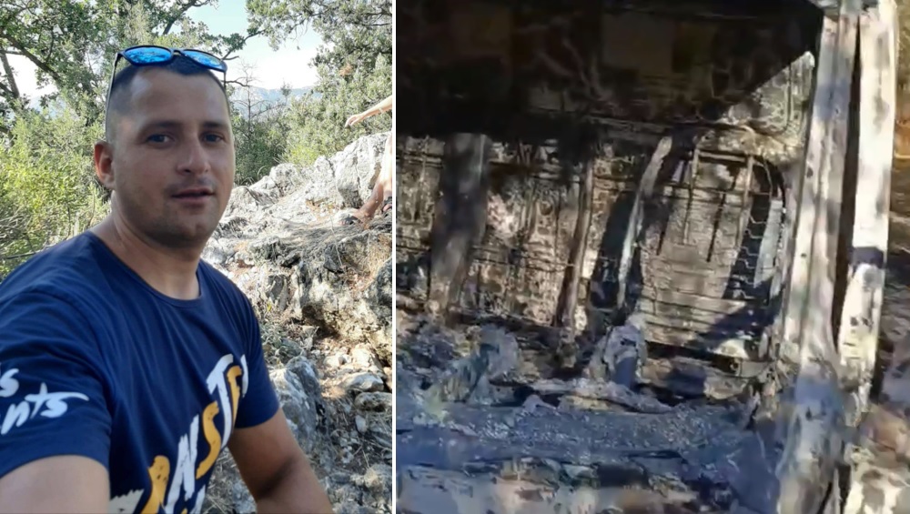 Ігор Погребенко та його спалений мікроавтобус. Фото ЦЖР