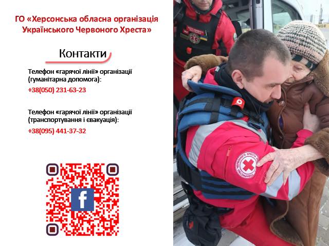 Про це в ефірі “Вгору” повідомила голова Херсонської обласної організації Товариства Червоного Хреста України Лариса Марченко.