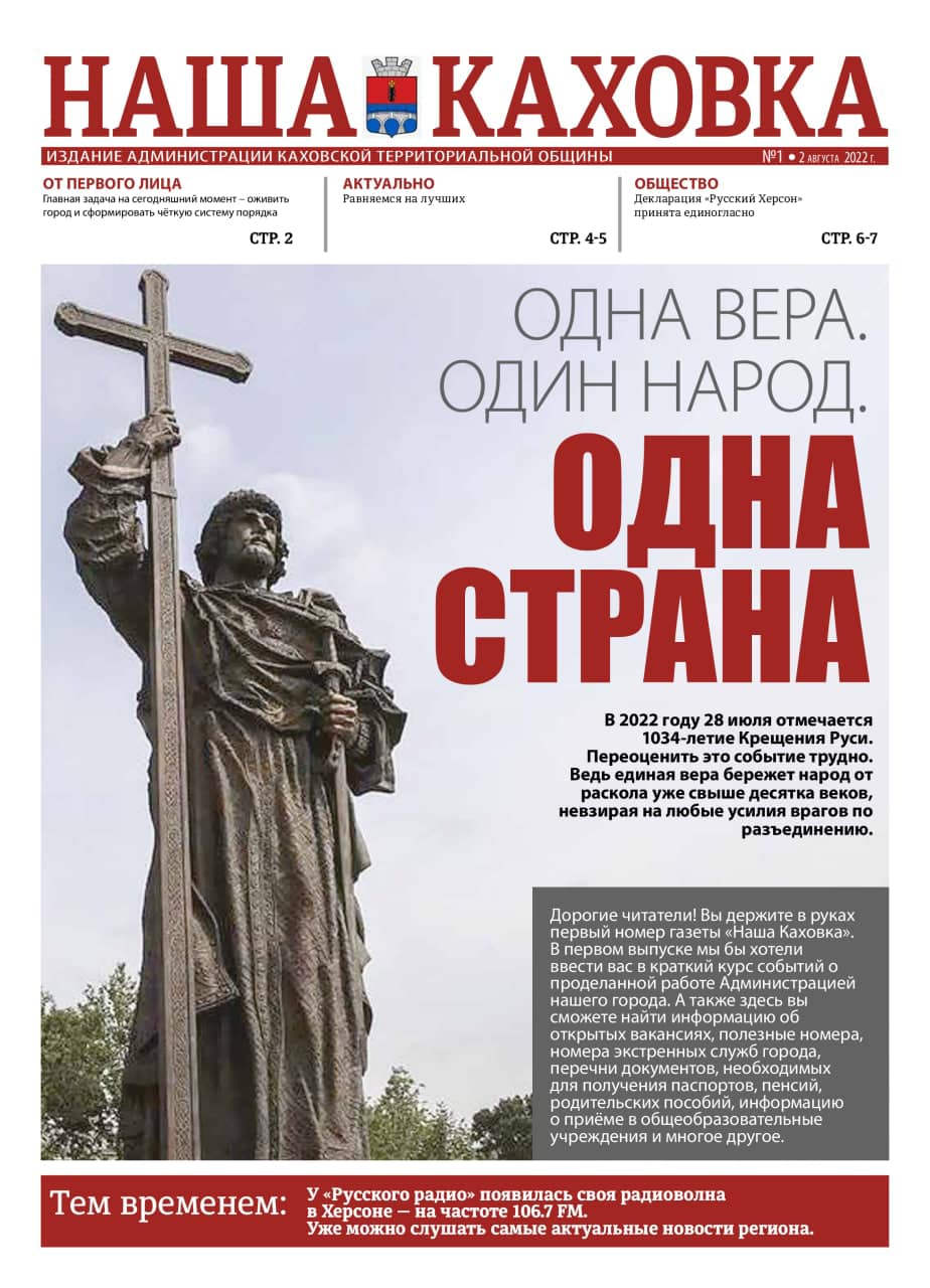 Журналіст Олег Батурін на власній сторінці у Facebook розмістив світлини “видань”, які почали друкувати окупанти в Новій Каховці та Каховці. Так, у Новій Каховці видали перший примірник “газети” “Нова Каховка”.