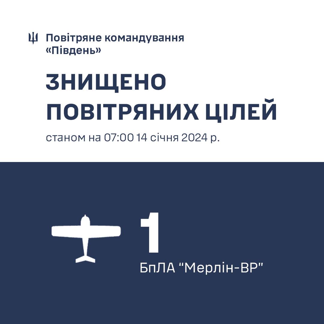 Сили протиповітряної оборони повітряного командування "Південь" 13 січня знищили над Херсонщиною російський розвідувальний БпЛА "Мерлін-ВР".