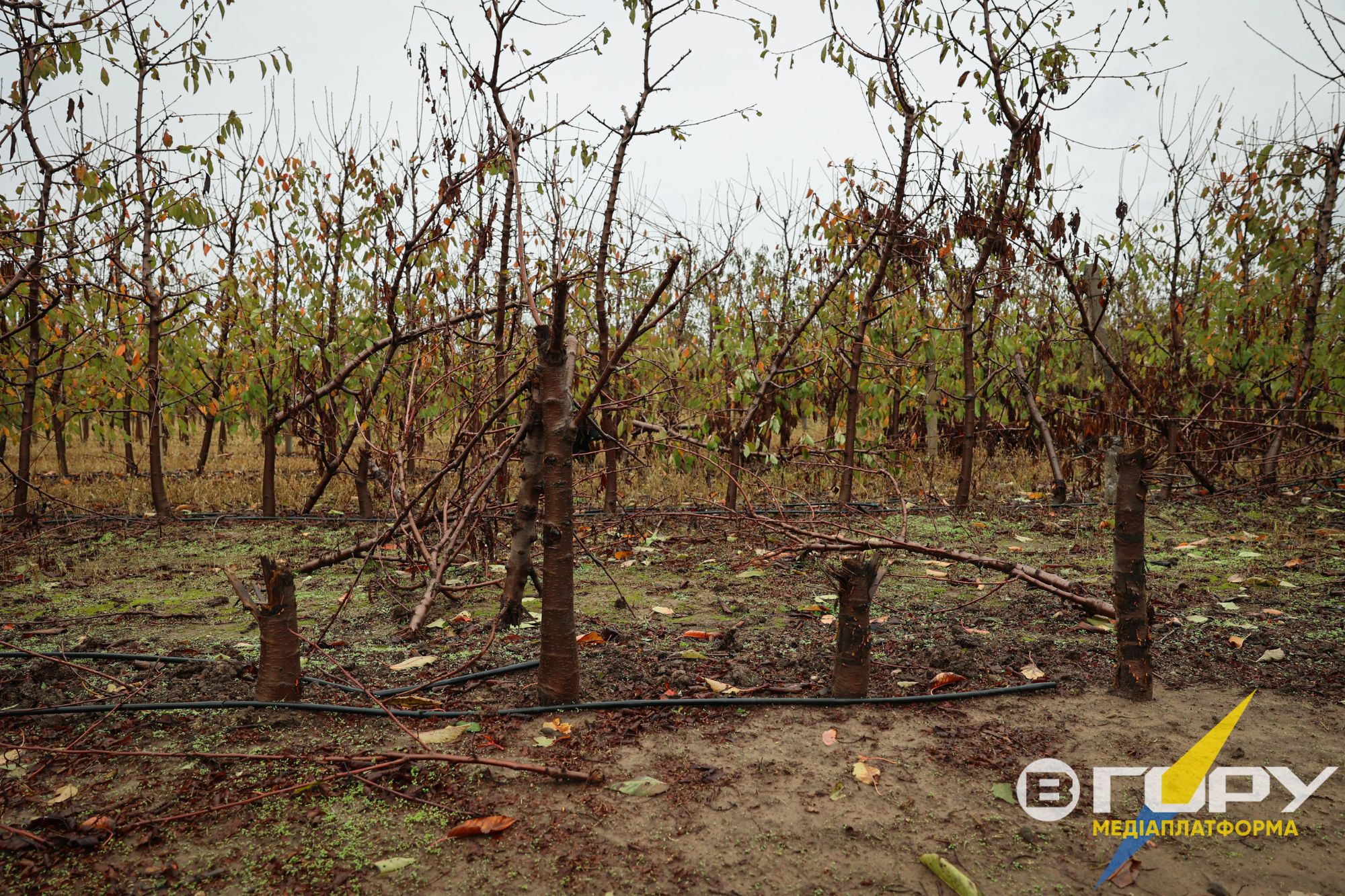 Російські війська спочатку замінували, а після втечі з правобережжя Херсонщини знищують обстрілами сад підприємця Сергія Ковальчука з селища Велетенського Білозерської громади. Багато дерев вже вщент розтрощені снарядами та вибуховими хвилями, вони ніколи не дадуть врожаю.