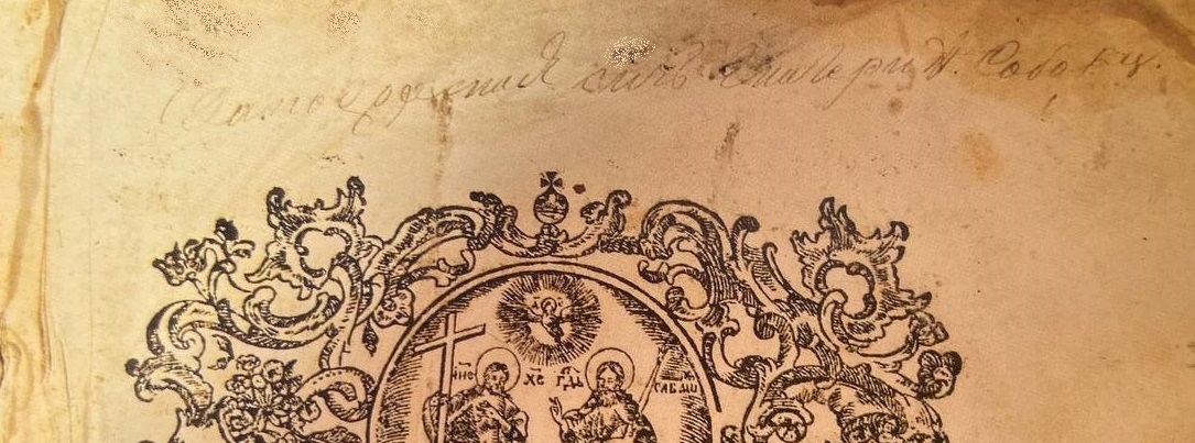 На першій сторінці ледь читається рукописний чорнильний напис: «Запорожская Сичъ Екатериненскому Собору».