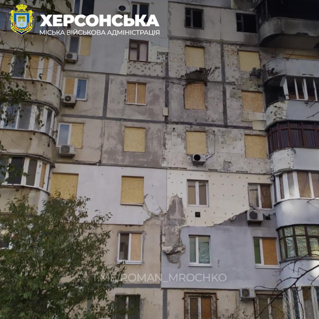 Наразі ж, за словами Наталії, у місті працюють бригади, створені комунальним підприємством “Парки Херсона”, закривають плитами ОСБ вікна квартир, чиї власники відсутні, із зовнішньої сторони будинку до п'ятого поверху. Виконувати роботи з 6 по 9 поверх буде інше, не місцеве підприємство. Для збереження тепла закриватимуть і вікна, які розташовані між під'їздами.