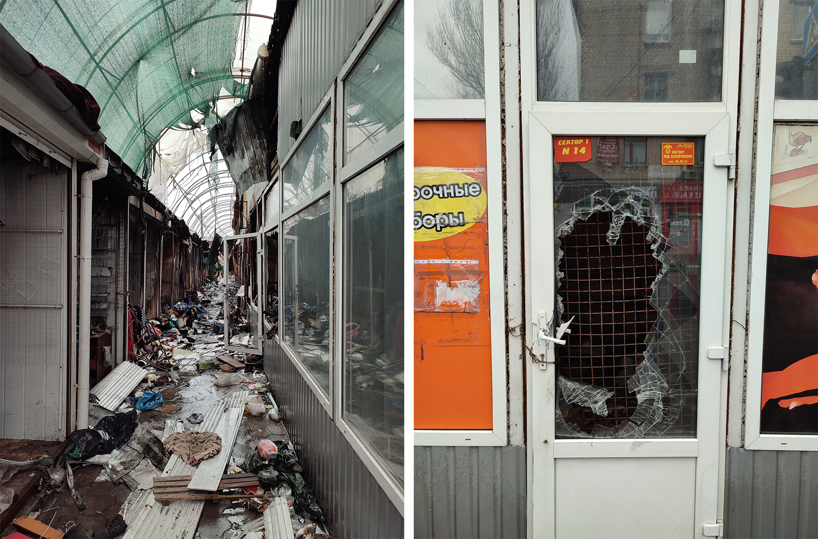 Наслідки бомбардування Центрального ринку 28 лютого 2022 року. Фото Петра Чупруна