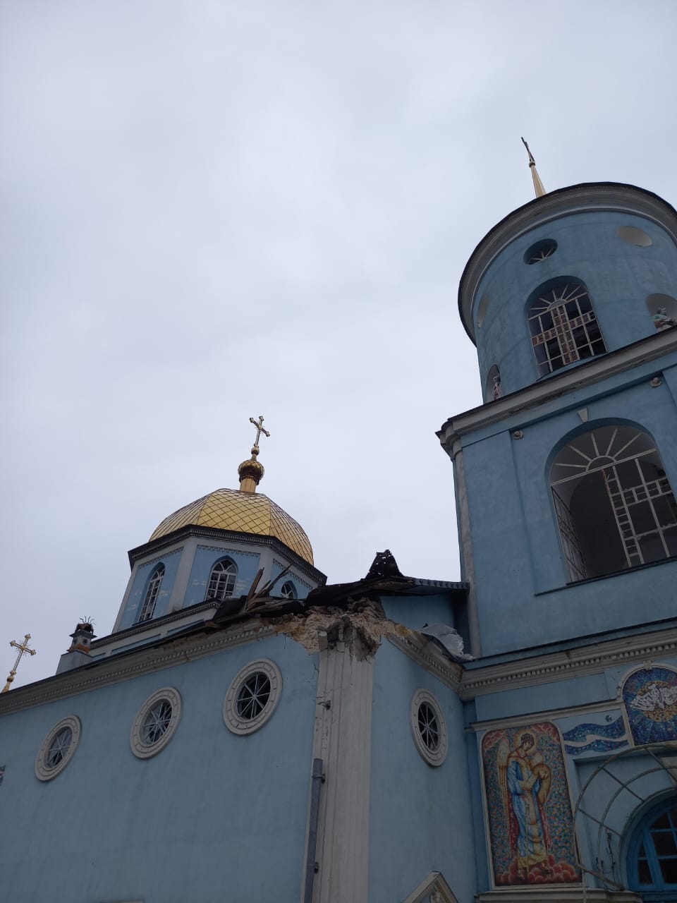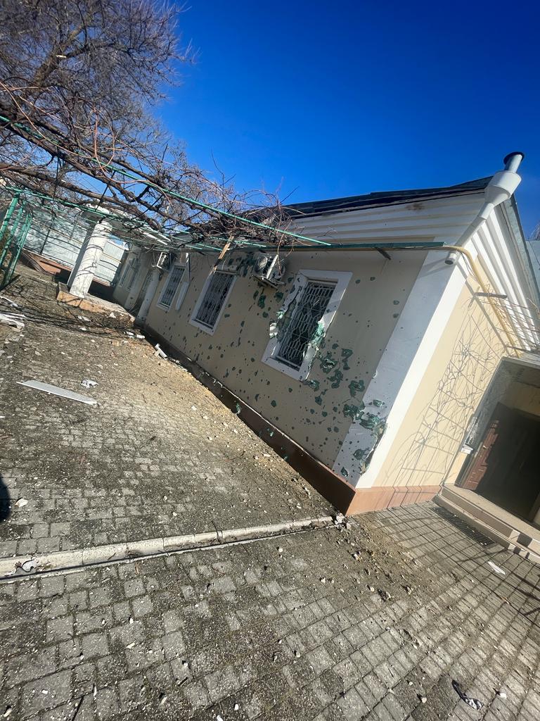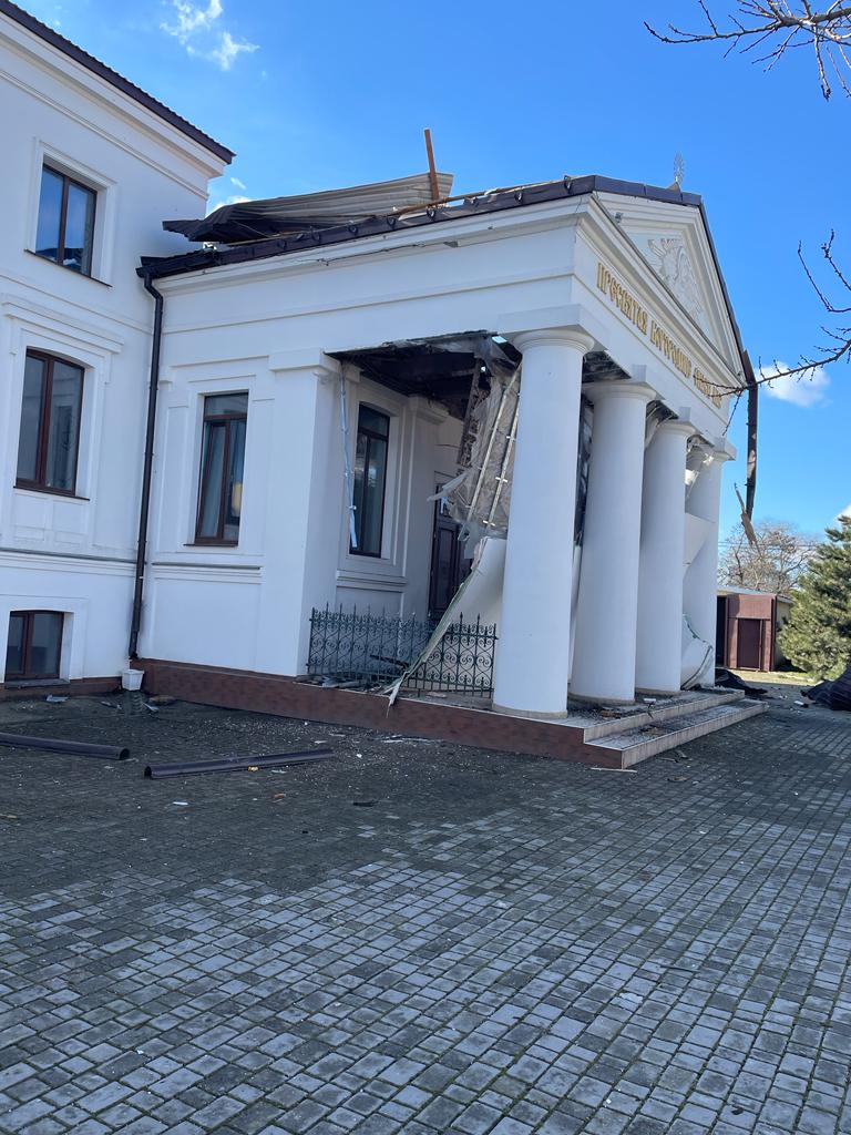 20.02.2023 руйнувань зазнав єпархіальний будинок керівника Херсонської єпархії УПЦ разом із домовою церквою. Один снаряд пробив дах, другий – зірвався неподалік будинку, осколки посікли фасад будівель