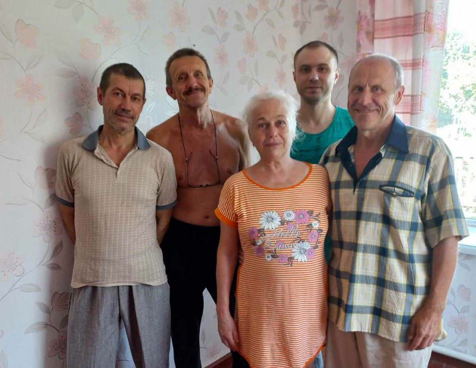 Всі разом після звільнення: Олексій Барчук, Олег Самотой, Лідія Подозерська, Сергій Барчук і Артем Барчук