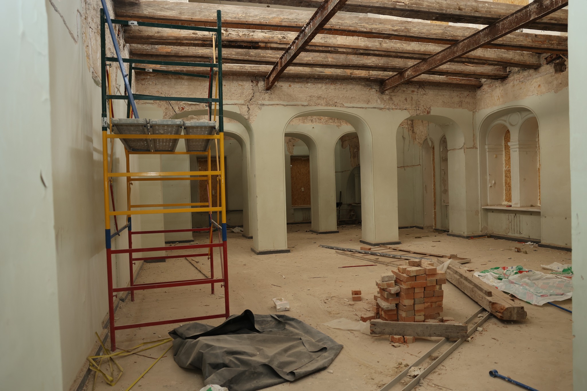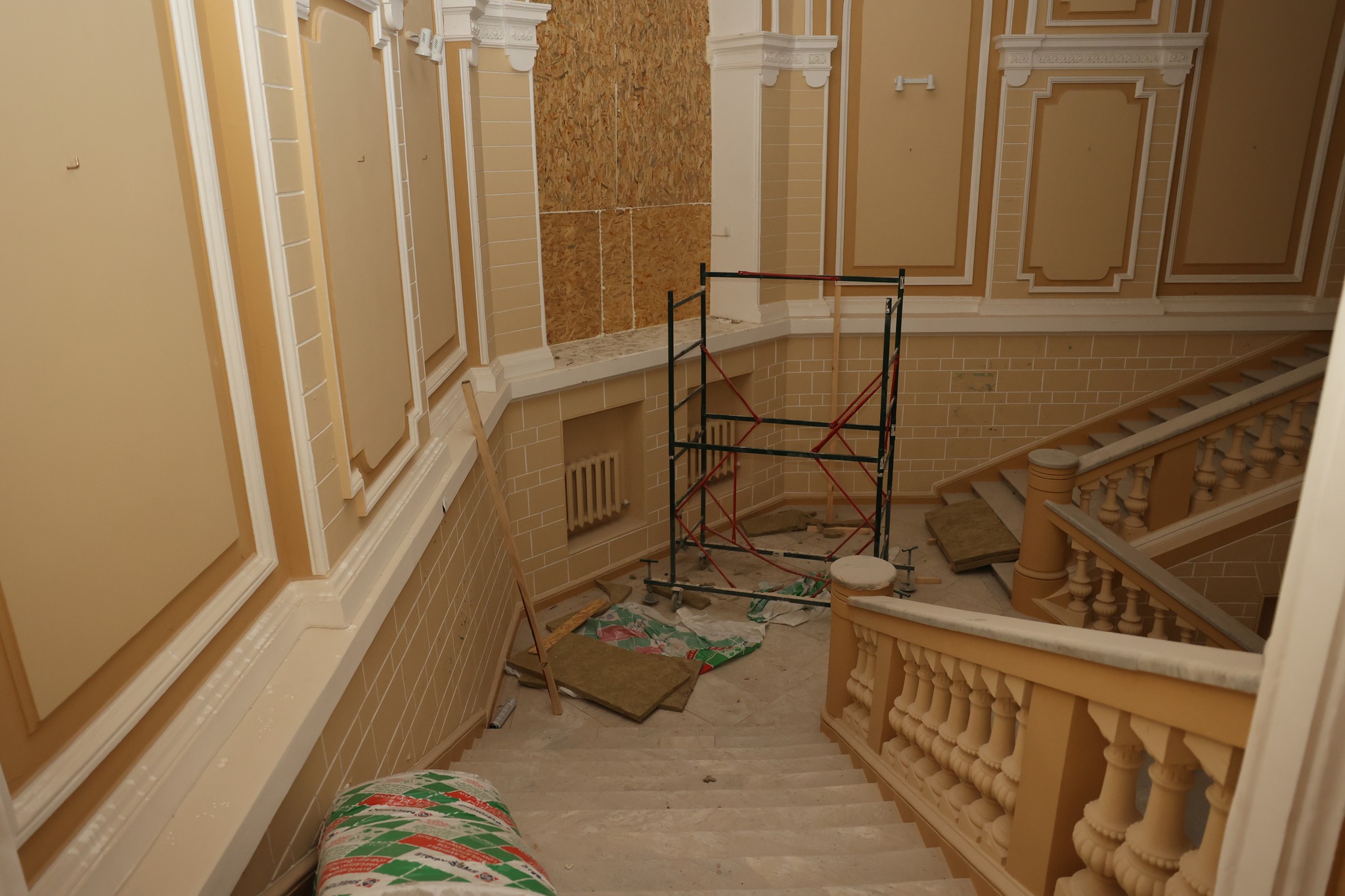 “Зали теж, мабуть, впізнаєте не з першого погляду, хоча вам вони добре знайомі — тут проходили вернісажі, концерти, зустрічі. Мало того, що напад росіян зупинив ремонтно-реставраційні роботи, так ще й снарядів ворог не пошкодував — після прильоту наприкінці листопада на розі Соборної та Воронцовської фасад посічений, віконне скло розбите… ”, – йдеться в повідомленні.