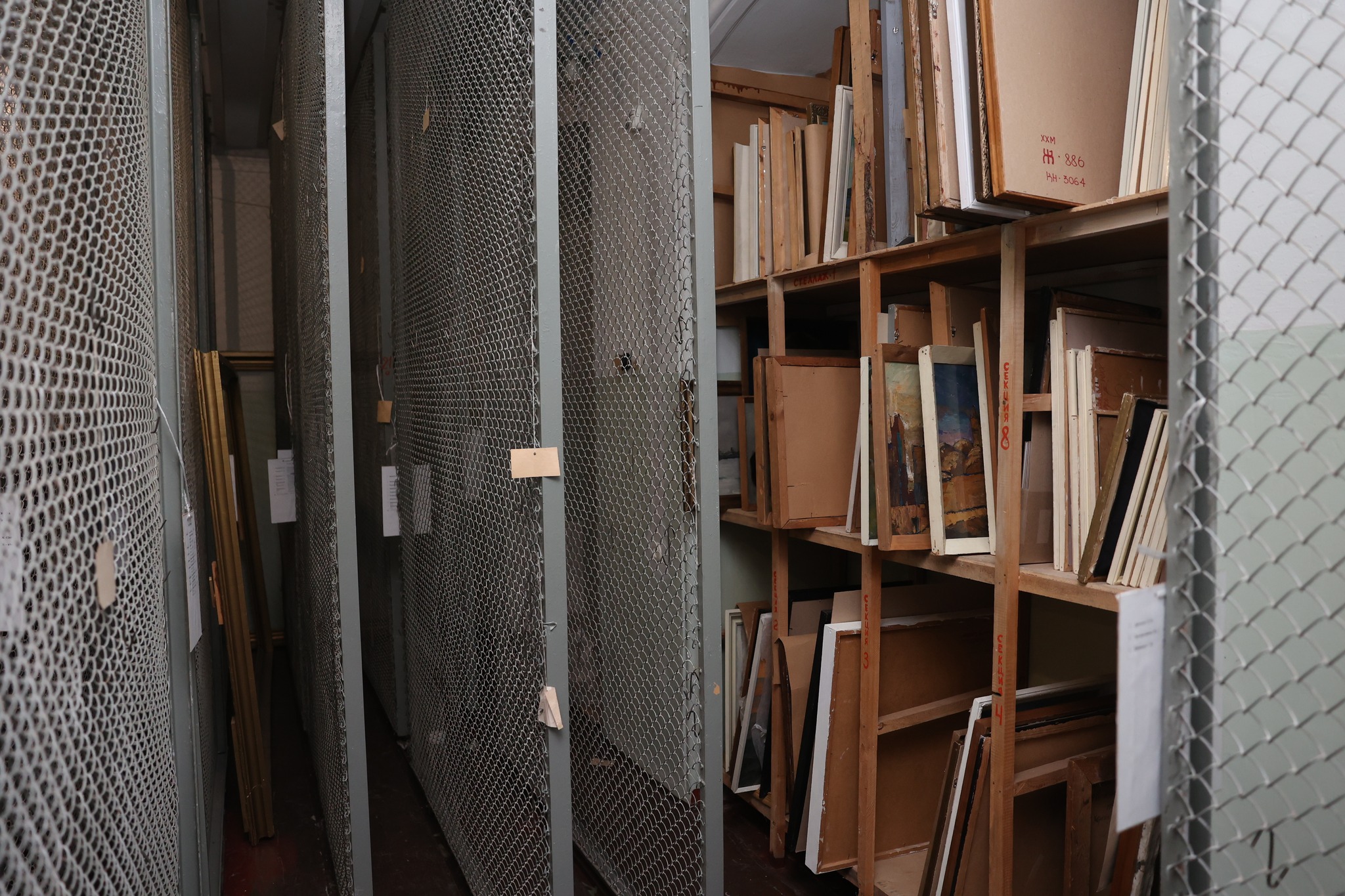 У приміщенні фондосховища Херсонського художнього музею порожньо, сітки для картин “голі”, а рами – без полотен.