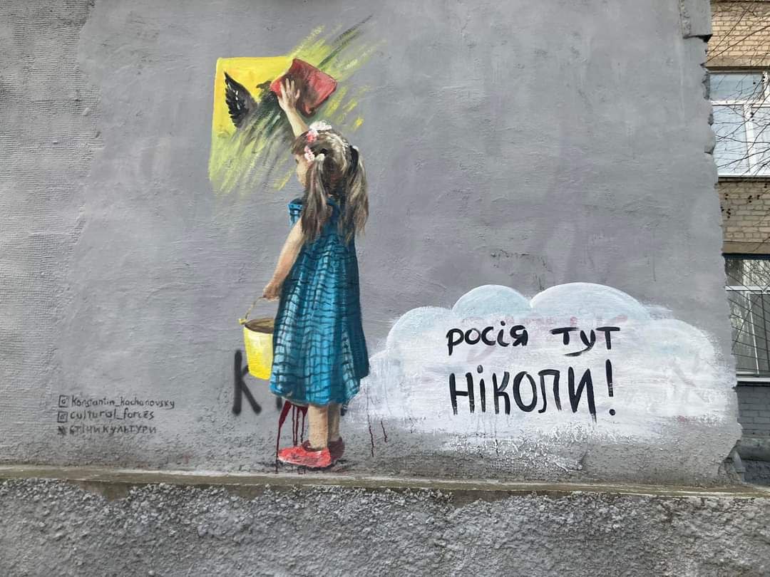На муралі зображена дівчинка, яка стирає герб рф, а поруч напис: “росія тут НІКОЛИ”.