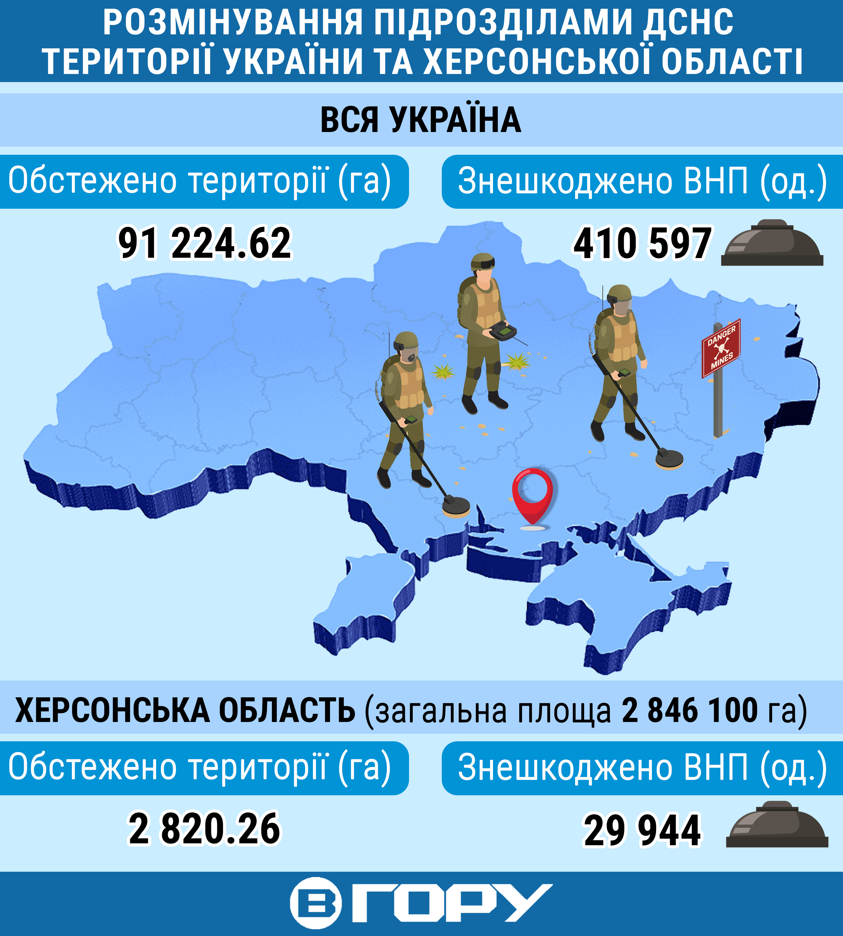 Розмінування підрозділами ДСНС території України та Херсонської області.