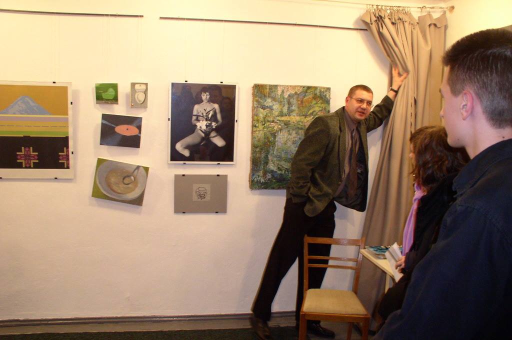 Слава Машницький відкриває одну з перших виставок у своїй квартирі-галереї-музеї