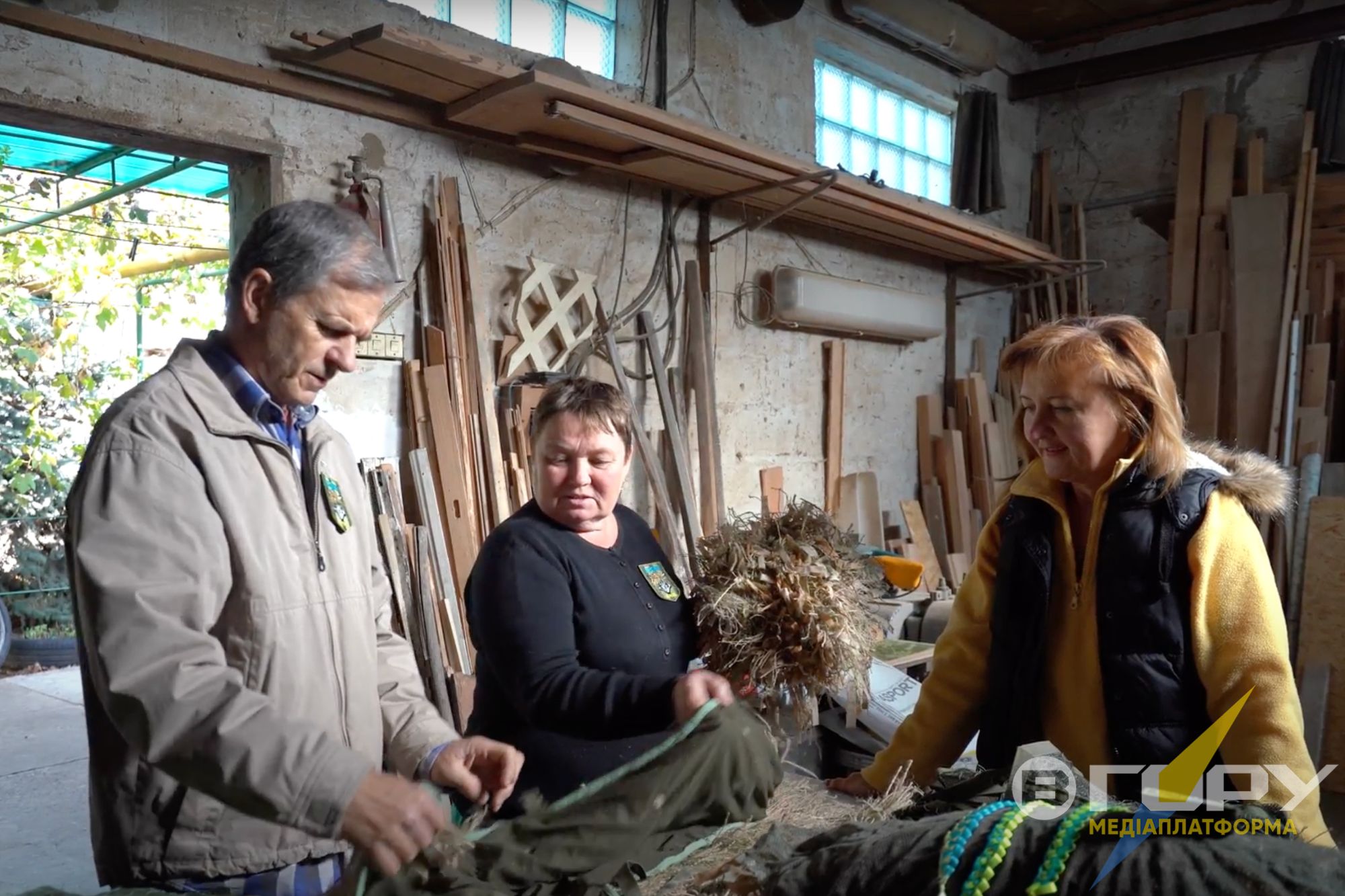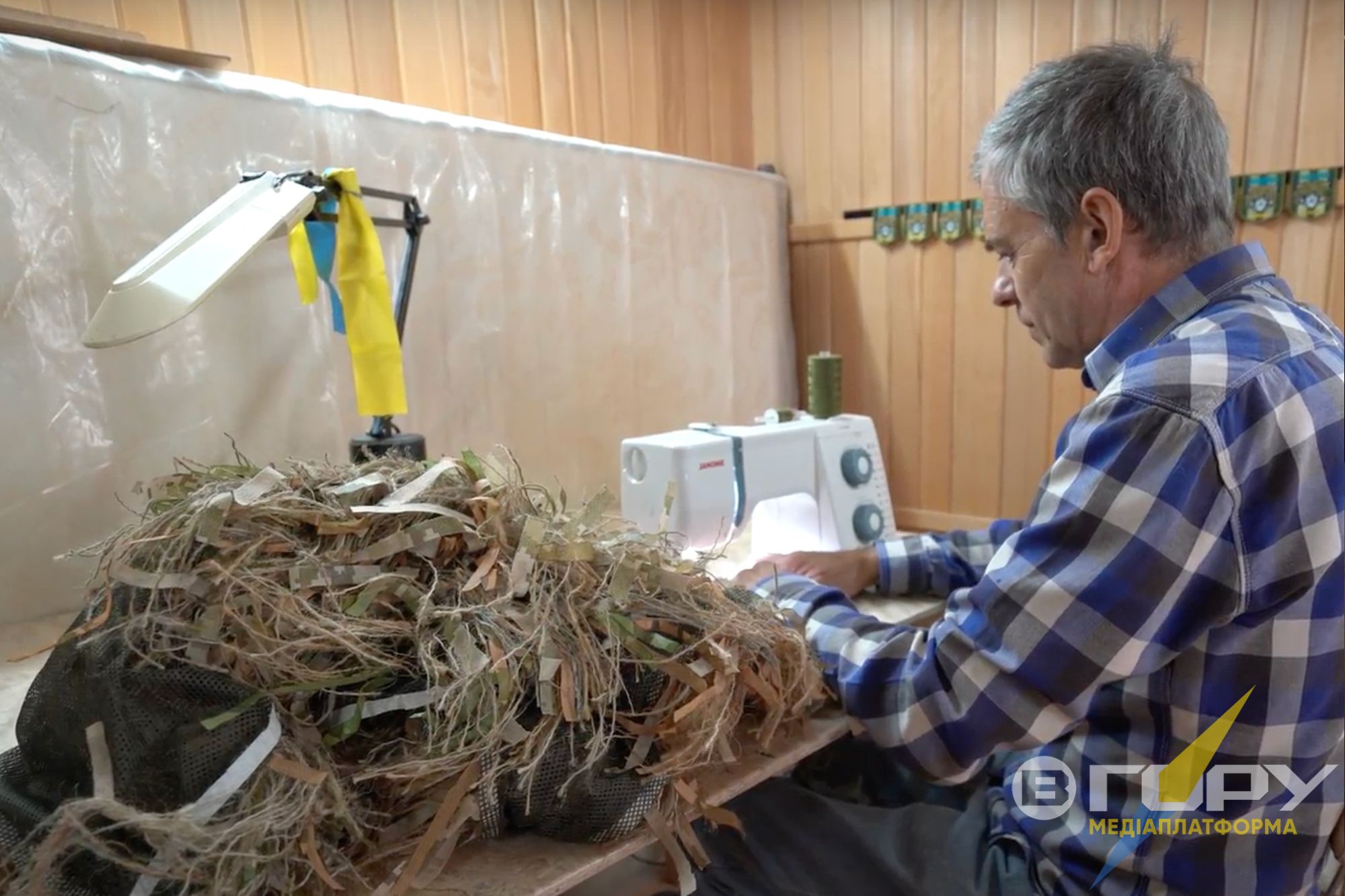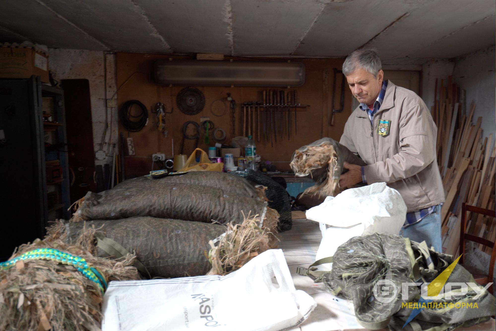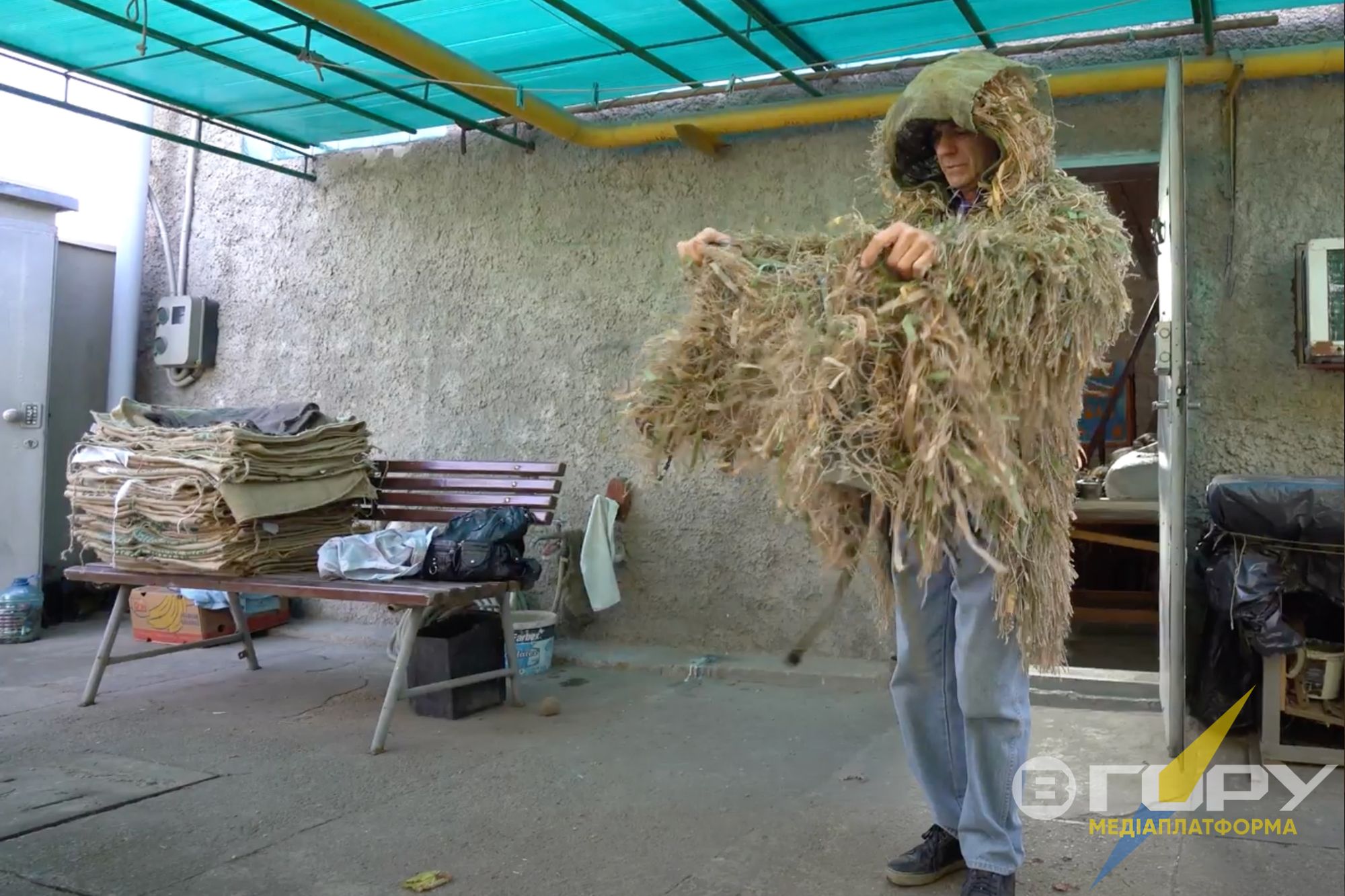 Він згадує, що спочатку окупації в місті ані інтернету, ані українських каналів телебачення чи радіо не було. Новини дізнавався, налаштувавши старенький радіоприймач на миколаївські хвилі. А потім встановив “тарілку” і зміг дивитися українське телебачення та користуватися інтернетом. На ютубі знайшов кілька відеороликів про виготовлення маскувальних курток-кікімор для військових. І почав шукати матеріали. В окупації це було досить складно, бо не скажеш, що потрібна відповідна мішковина для кікімор. Олег розповідає:
