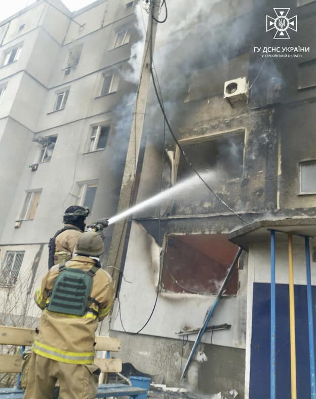 Як інформує Головне Управління ДСНС України в Херсонській області, у Бериславі 23 січня виникла пожежа в багатоквартирному будинку після російського обстрілу. На місце події прибули бериславські рятувальники та почали гасити пожежу. Під час цього російський безпілотник і атакував рятувальників.