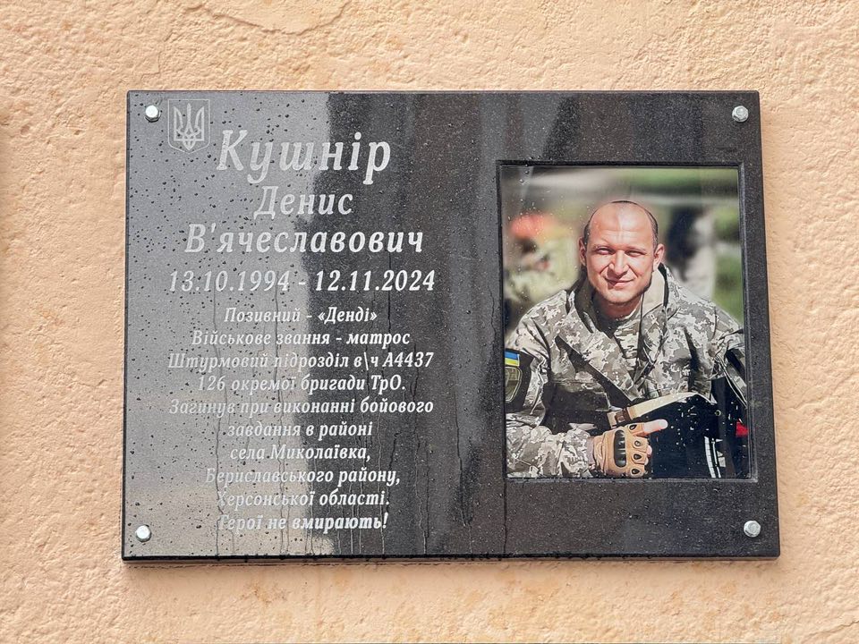 У Чорноморську Одеської області 6 жовтня 2025 року відкрили меморіальну дошку загиблому матросу Денису Кушніру. Він поліг у боях на Херсонщині.
