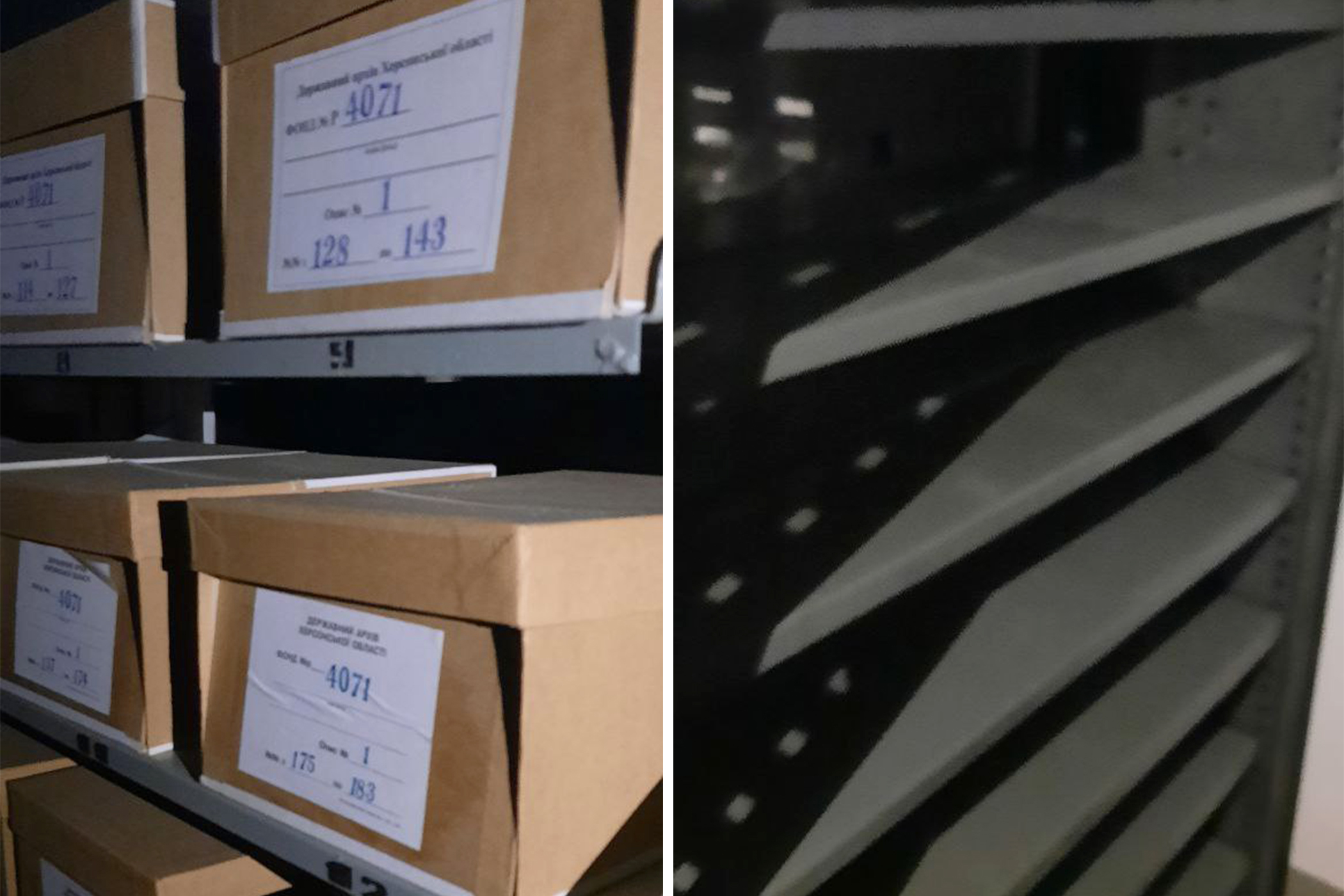 Архівні документи і порожні полиці в архіві після деокупації