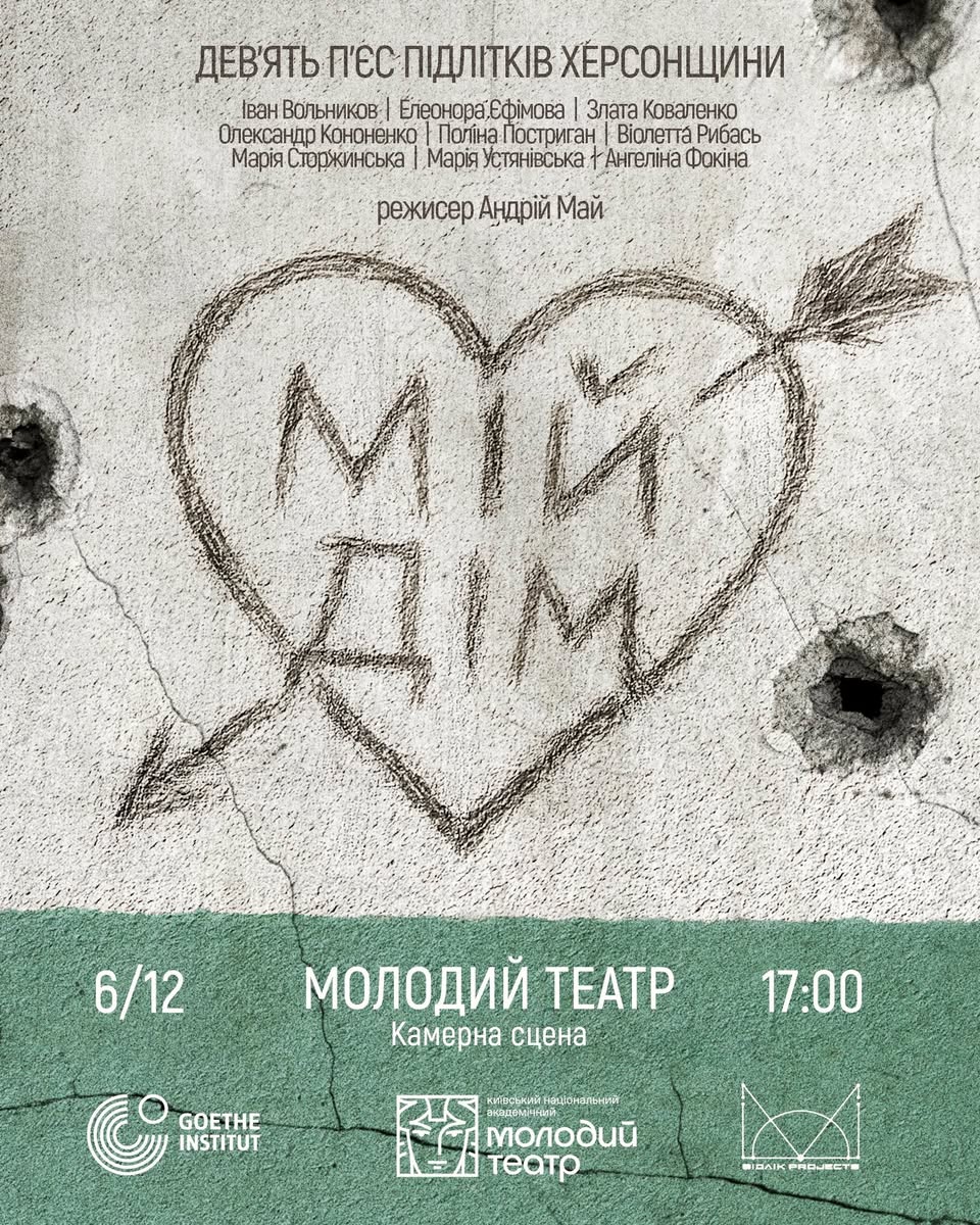 На сторінці Молодого театру йдеться, що у межах театрального проєкту «Мій дім» дев’ятеро підлітків із Херсонщини створили власні короткі п’єси про дорослішання. Підтримкою на шляху до цих історій стали українські та німецькі ментори.