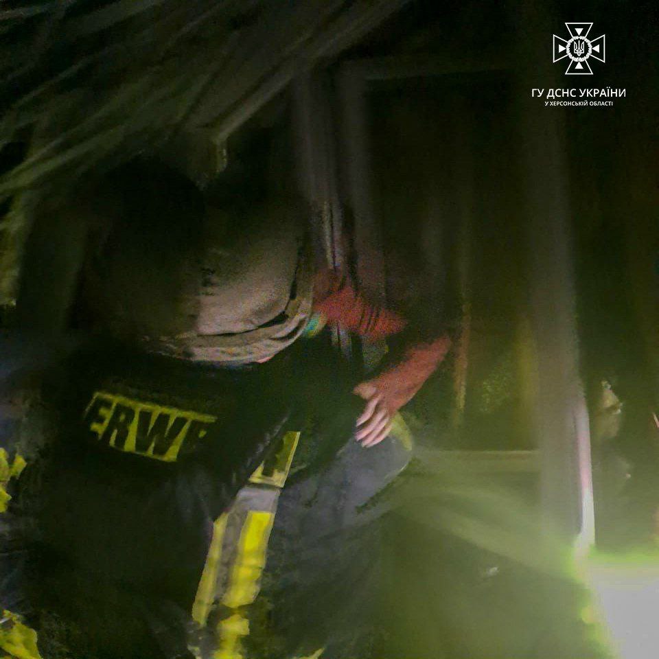У Херсоні через влучання російського снаряда в житловий будинок у кімнаті заблокувало жінку. Її визволили рятувальники.