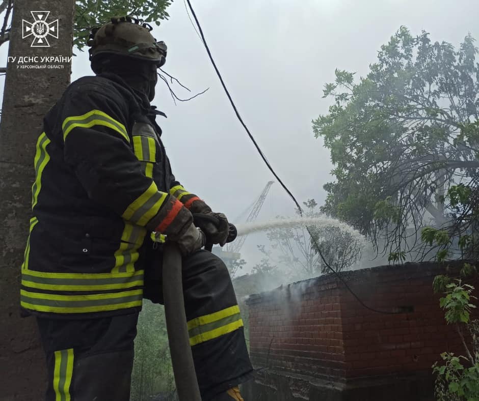 Наприкінці квітня рятувальники ліквідували дві пожежі, які сталися через російські обстріли у Бериславі та в селі Кізомис Білозерської громади.
