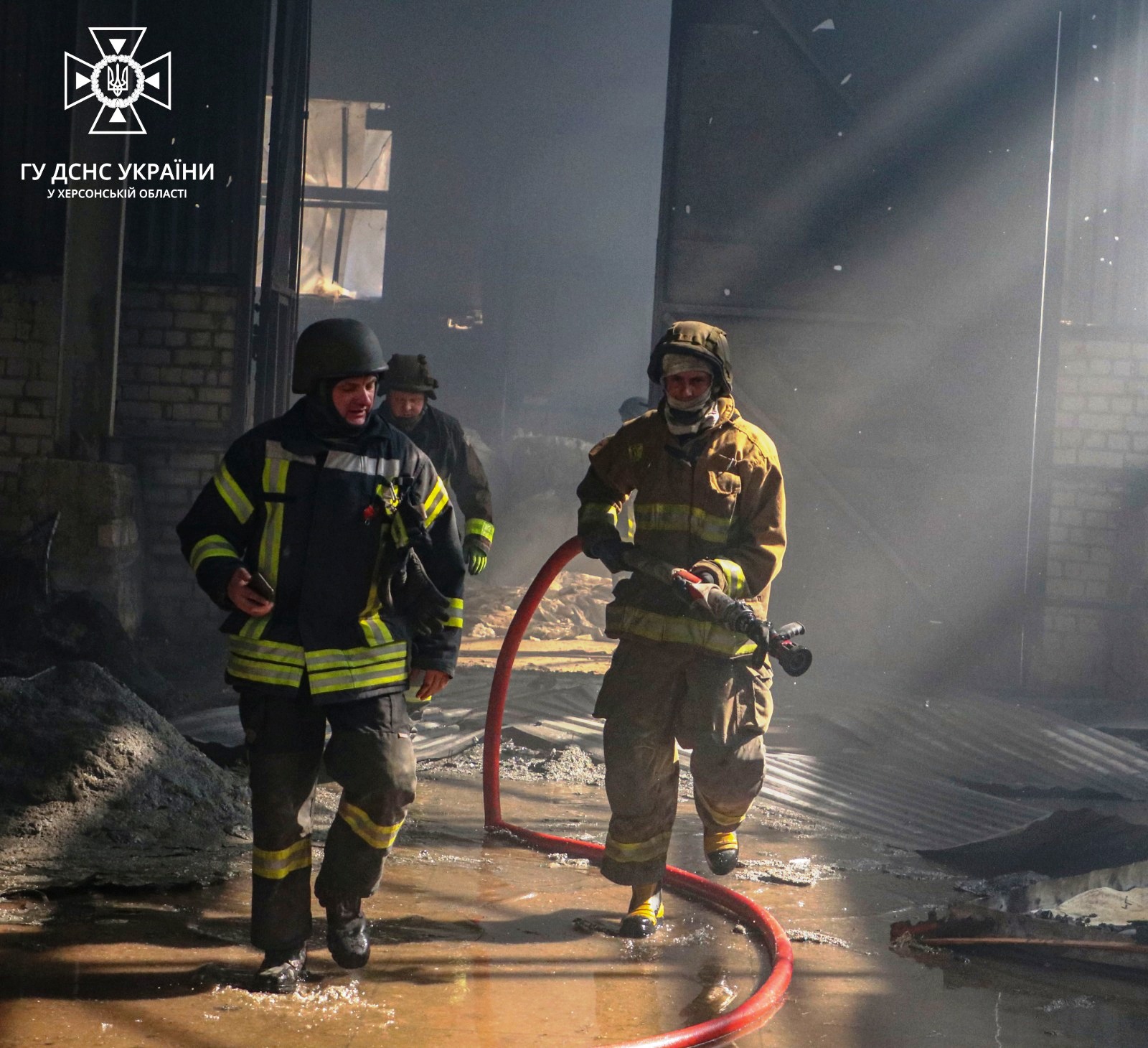 У Херсоні внаслідок ворожого обстрілу виникла пожежа в складському приміщенні підприємства.