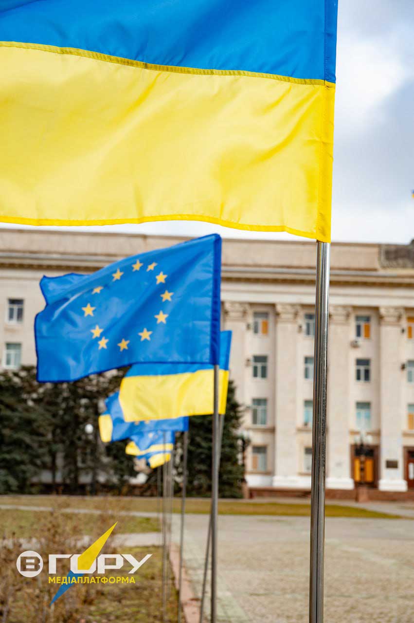 Також по Херсону до Дня Соборності розвісили стяги України та Європи.