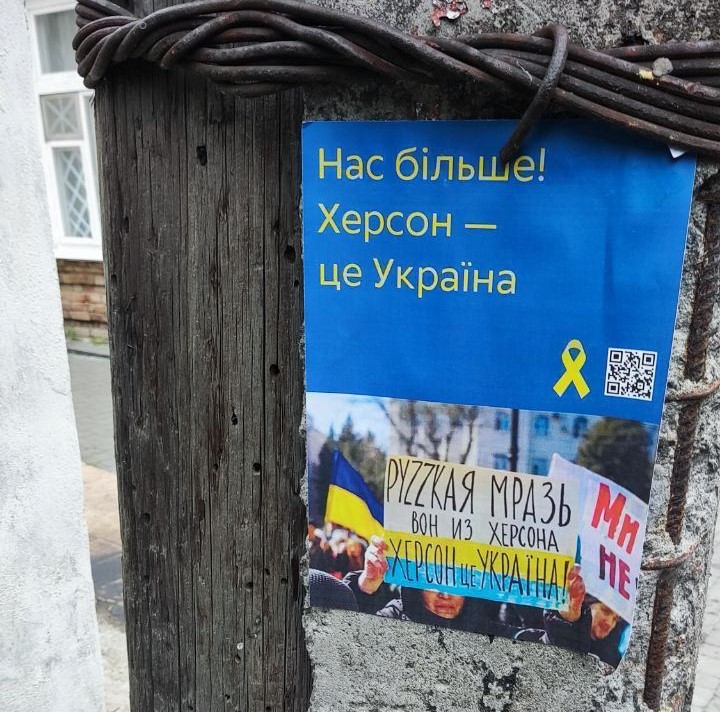 Учасники Руху “Жовта Стрічка” розклеїли патріотичні листівки в Херсоні та Генічеську, виступаючи проти так званого “референдуму”.