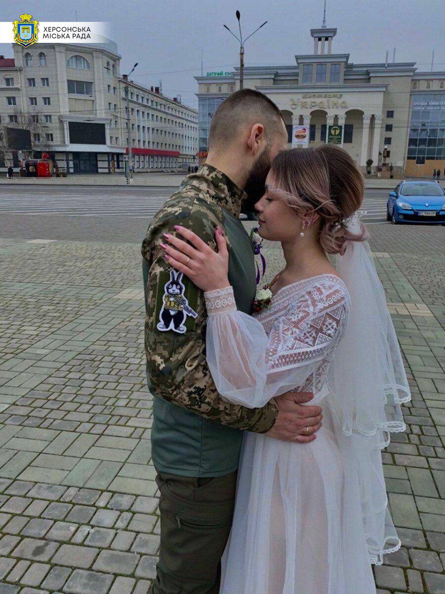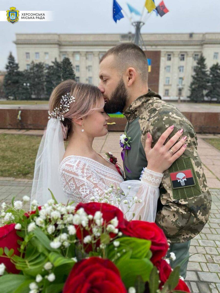 Аліна та Михайло, боєць ЗСУ, познайомилися в селищі в день визволення – 11 листопада 2022 року. А напередодні 27 січня взяли шлюб. Про це повідомляє Херсонська міська рада.