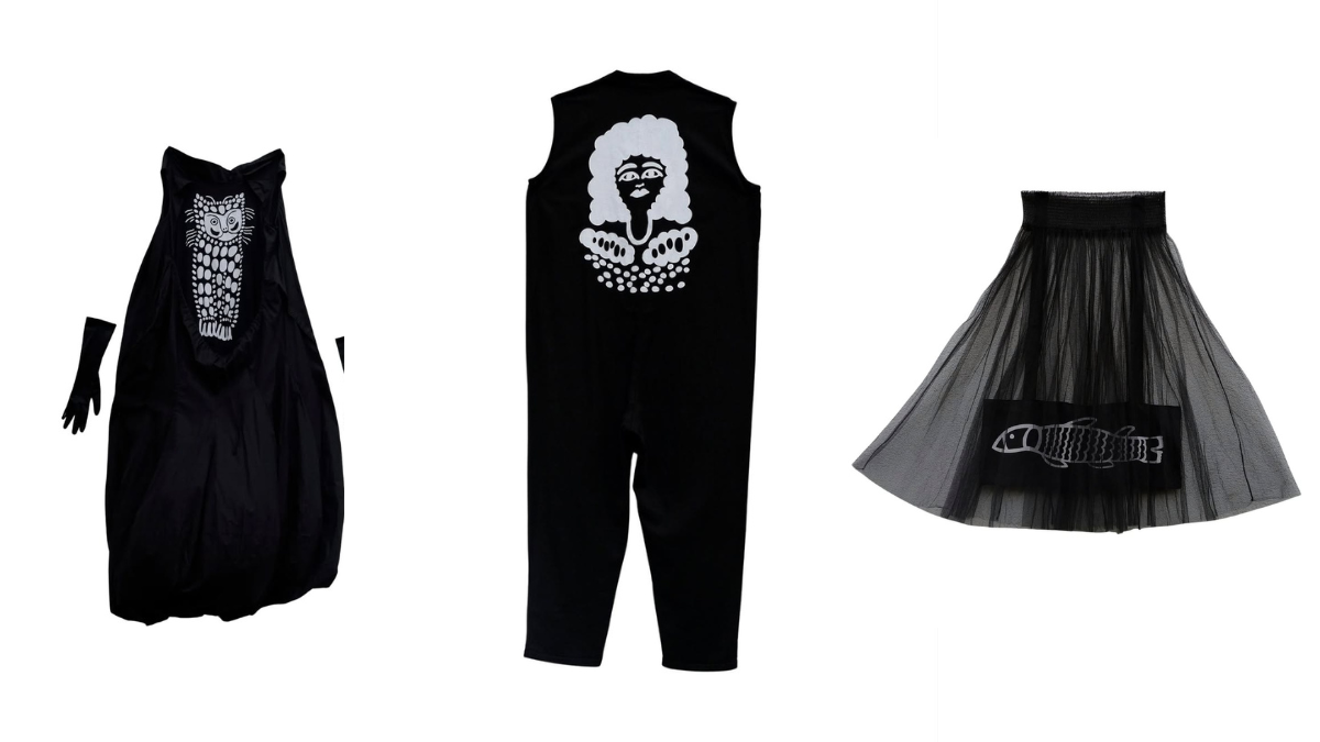 Однією з особливостей колекції є те, що на противагу яскравим розписам у будинку художниці для одягу обрали чорно-білу гаму.