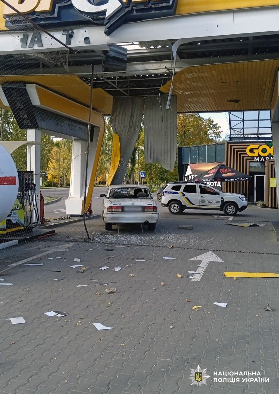 У Центральному районі Херсона 12 жовтня російські військові вдарили дроном типу FPV по території АЗС, поранені троє чоловіків віком 43, 51 та 66 років.