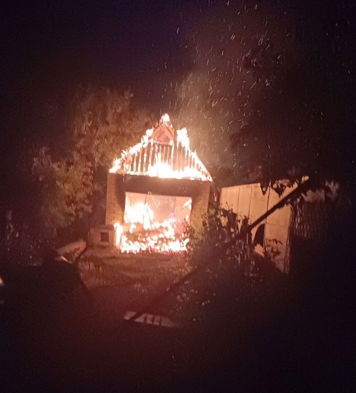 Місцеві жителі частково змогли ліквідувати пожежу, яка сталася під час обстрілів.