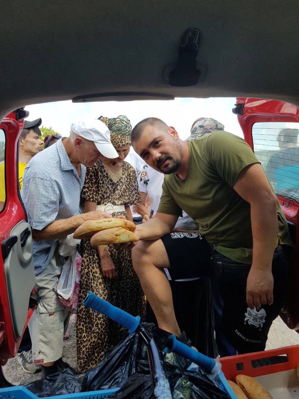 “У мене було десь 60-70 сімей, які залежали від того, що я їм привезу. І продукти, і гігієнічні набори. Я не міг кинути людей напризволяще. Коли привозиш щось бабусі, якій 95 років… А вона руки за спиною ховає і говорить: “я російських харчів брати не буду! І ми їй показували, що ми працюємо від Києва, що це наші друзі з Києва передали, що це українська допомога. І росіян робота волонтерів дуже дратувала. Бо засвідчувала, що Україна своїх не кидає. І мене це стимулювало”.