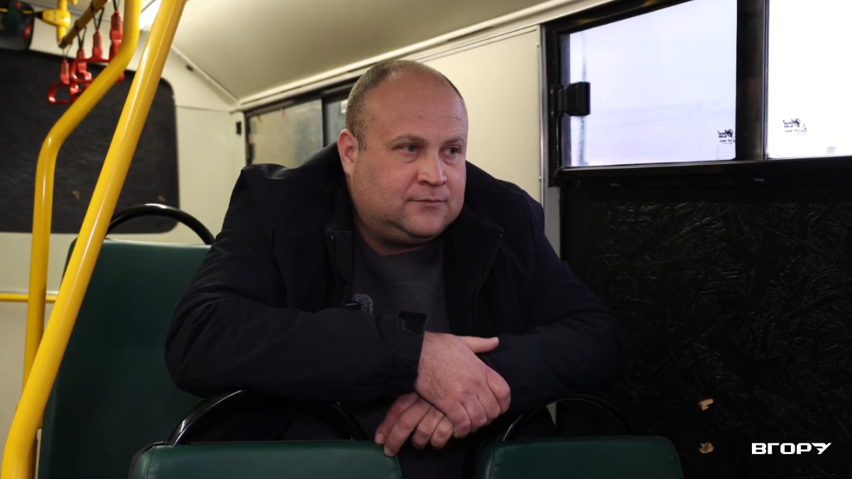 На тлі вибухів, вирв від снарядів, забитих фанерою вікон після “прильотів” водій автобуса Максим не втрачає оптимізму й навіть шуткує, а свою роботу називає “звичайною”.
