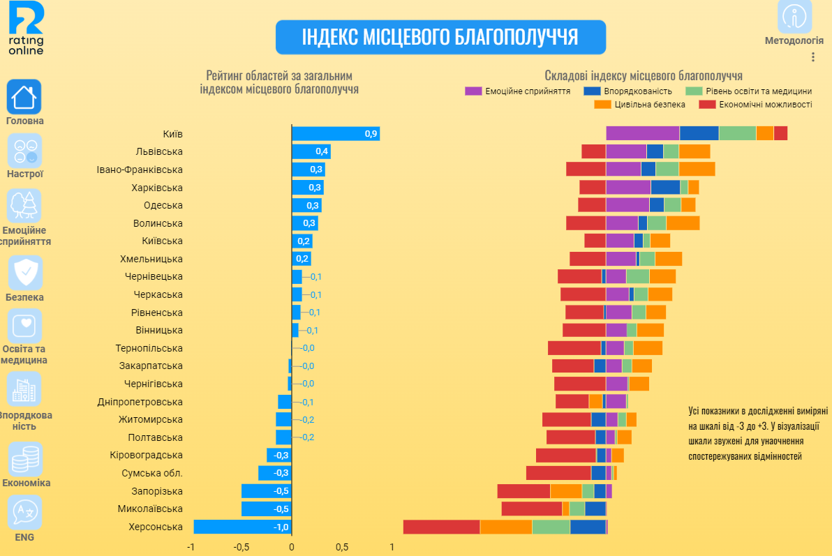 За Індексом місцевого благополуччя Херсонська область посідає останнє місце серед всіх областей України.