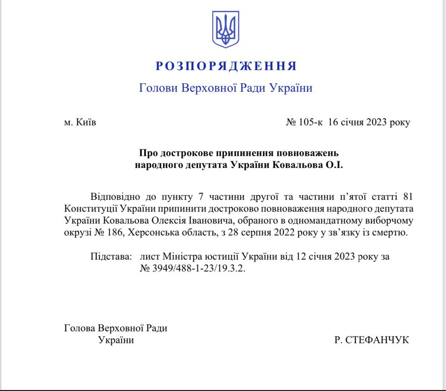 Про те, що олексій ковальов більше не народний депутат, у Twitter повідомив спікер Верховної Ради України Руслан Стефанчук.