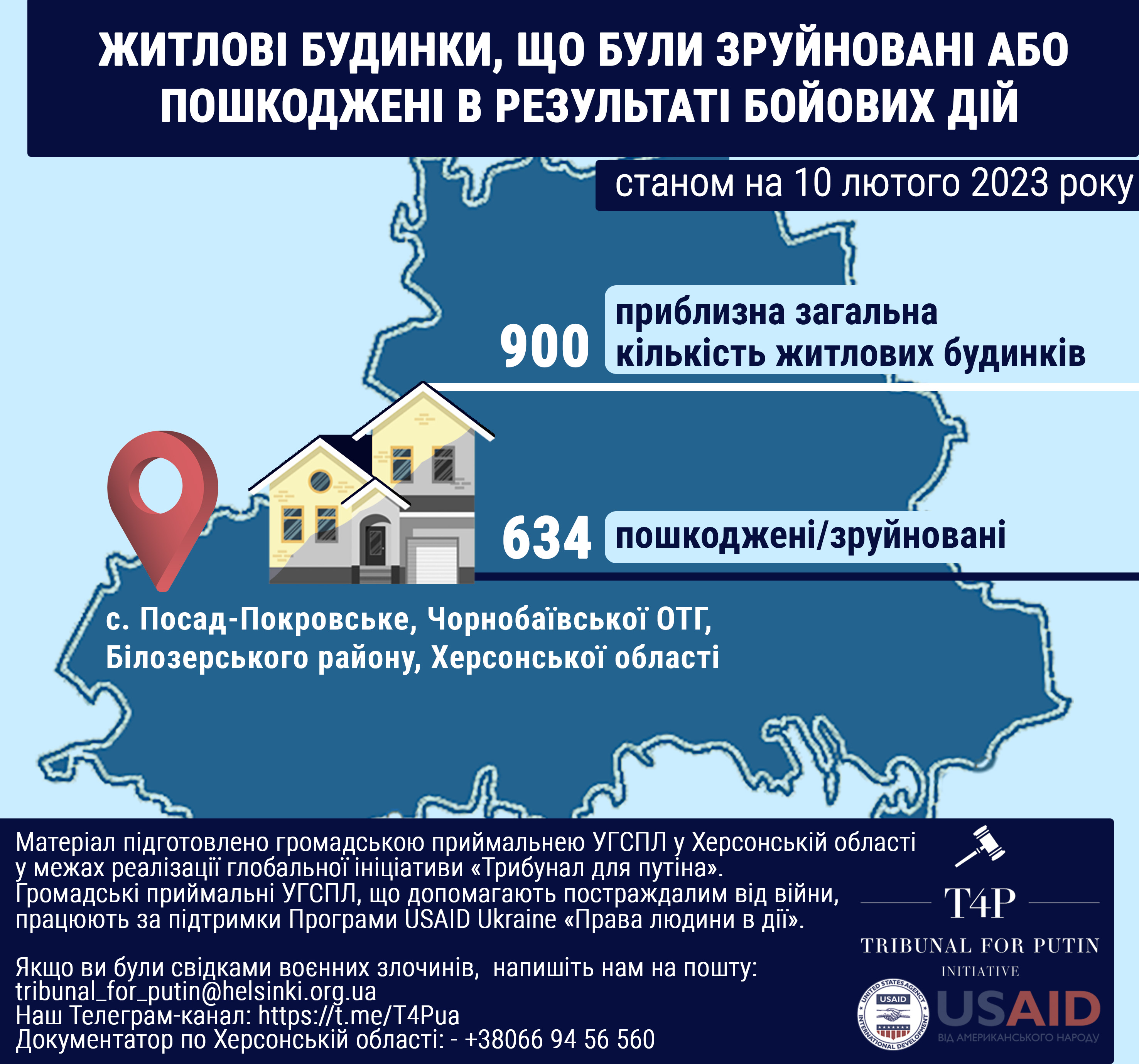 Кількість житлових будинків, які були зруйновані або пошкоджені у селі Посад-Покровське Херсонської області