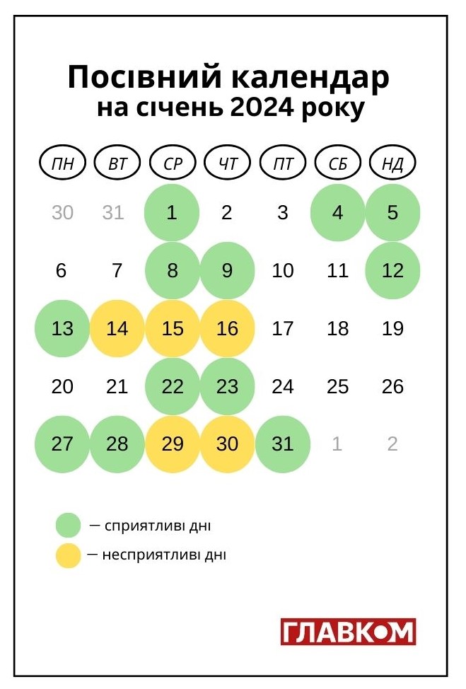 Посевной календарь на январь 2025 года инфографика: glavcom.ua