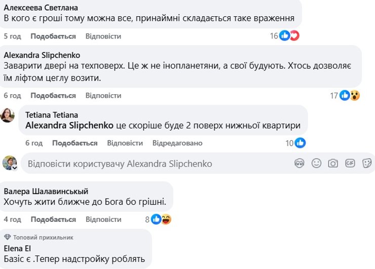 В столичной прокуратуре и Оболонской РГА Киева опубликованные в сети фото пока никак не комментировали, а вот под постом в соцсетях пользователи уверены, что строить могут жильцы этого же дома.