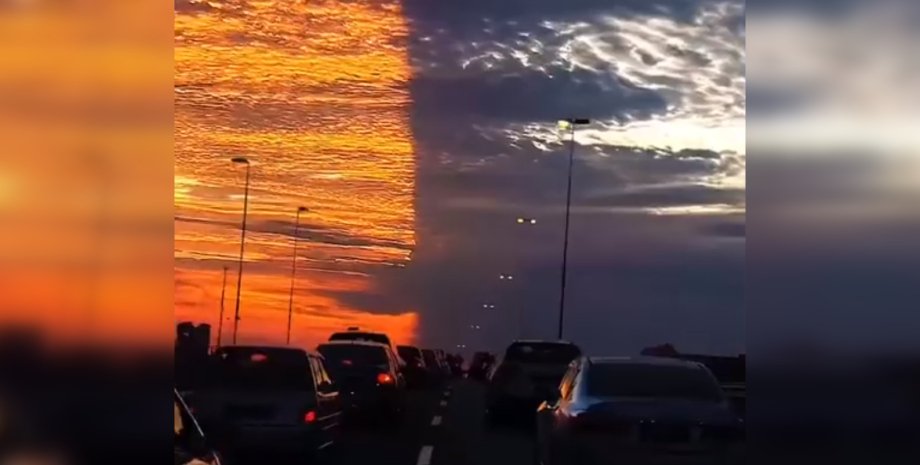 В американском штате Флорида наблюдали необычное явление: небо во время заката разделилось на две части. Очевидцы поделились видеокадрами в социальной сети X (ранее — Twitter).